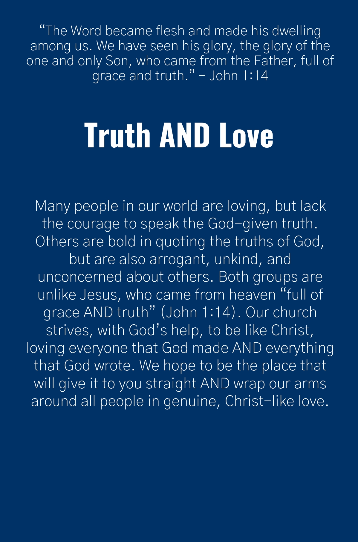 We invite you to explore our beliefs and join us in our passionate pursuit of living out our faith.